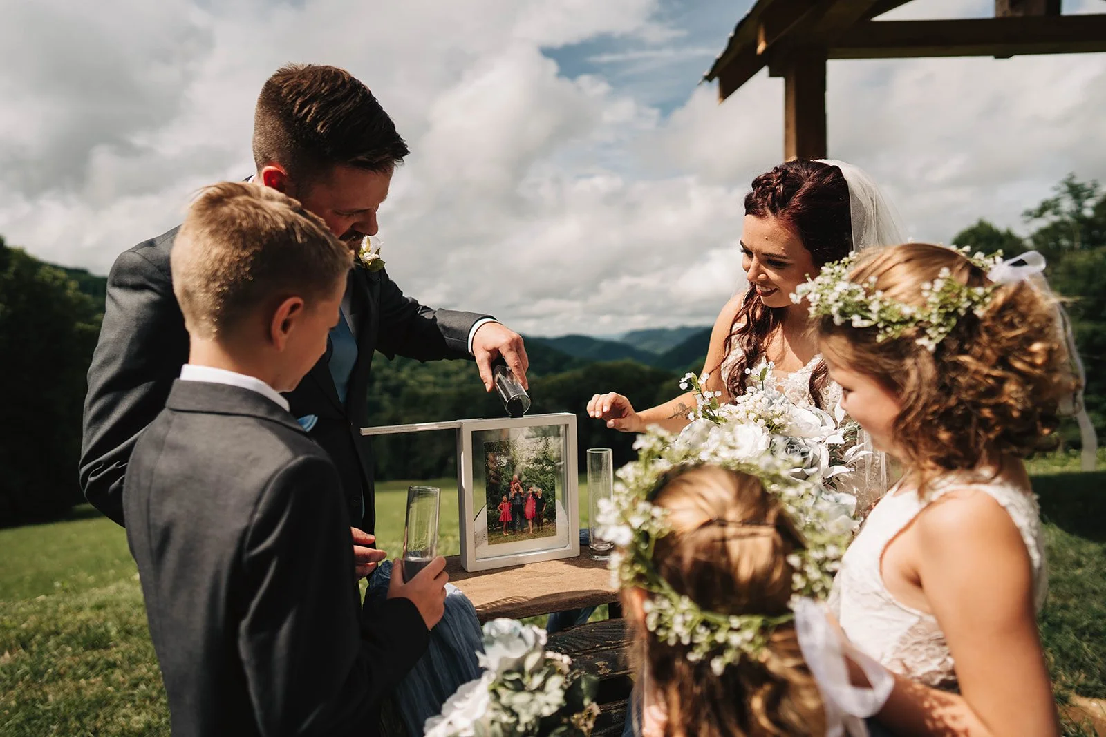 A ring warming keeps things simple and quiet—perfect for an intimate mountain wedding in Asheville where every gesture feels intentional. Guests (or witnesses) hold the bands for a few breaths, layering in hopes and good energy without stopping the flow. It’s low-gear, high-meaning, and photographs beautifully in those calm minutes before the ceremony begins.