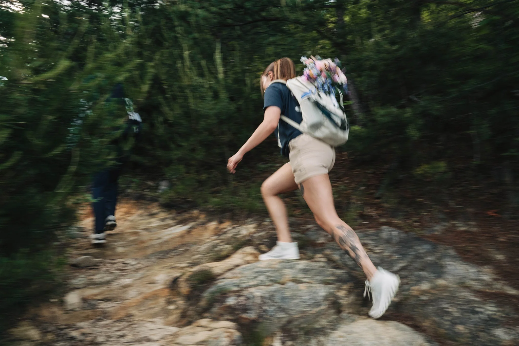 You can also just go for it — wear the dress, hike the trail, get some dirt on it, and embrace the imperfections. Some of the best photos come from letting go of the pressure to keep everything spotless. Bustling the dress does a lot to keep things up off the ground, so having the ability to do that can also be really great.Hike in regular clothes and change at the top.